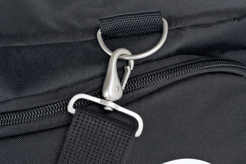 CHUNKY CARRY HANDLES join at the side of the bag & with the use of a velcro strap they connect comfortably together. Brushed Aluminum Quick Release Dog Clips attach or remove the Double Padded & Adjustable length Shoulder Strap, making carrying it down the beach or through the airport as comfy as possible. There is also a quick access Exterior Travel pocket for storing documents and the likes & Re-Enforced Grab Handle at the end of the bag to assist in lugging the bag around.