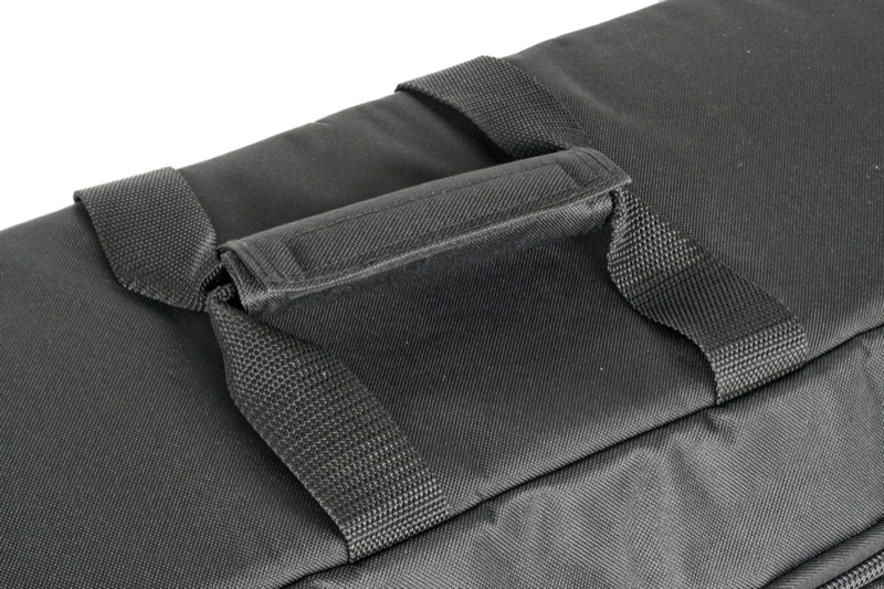 The interior of the bag is lined in strong Nylon making slipping your board into the bag very easy to do. It also has Super-long Velcro Pockets that run the entire length & depth of both sides of the bag, allowing you to be able to safely store your Bar & lines within. Steady straps wrap over the deck, anchoring it in place to avoid rolling around, making it more comfortable to carry.